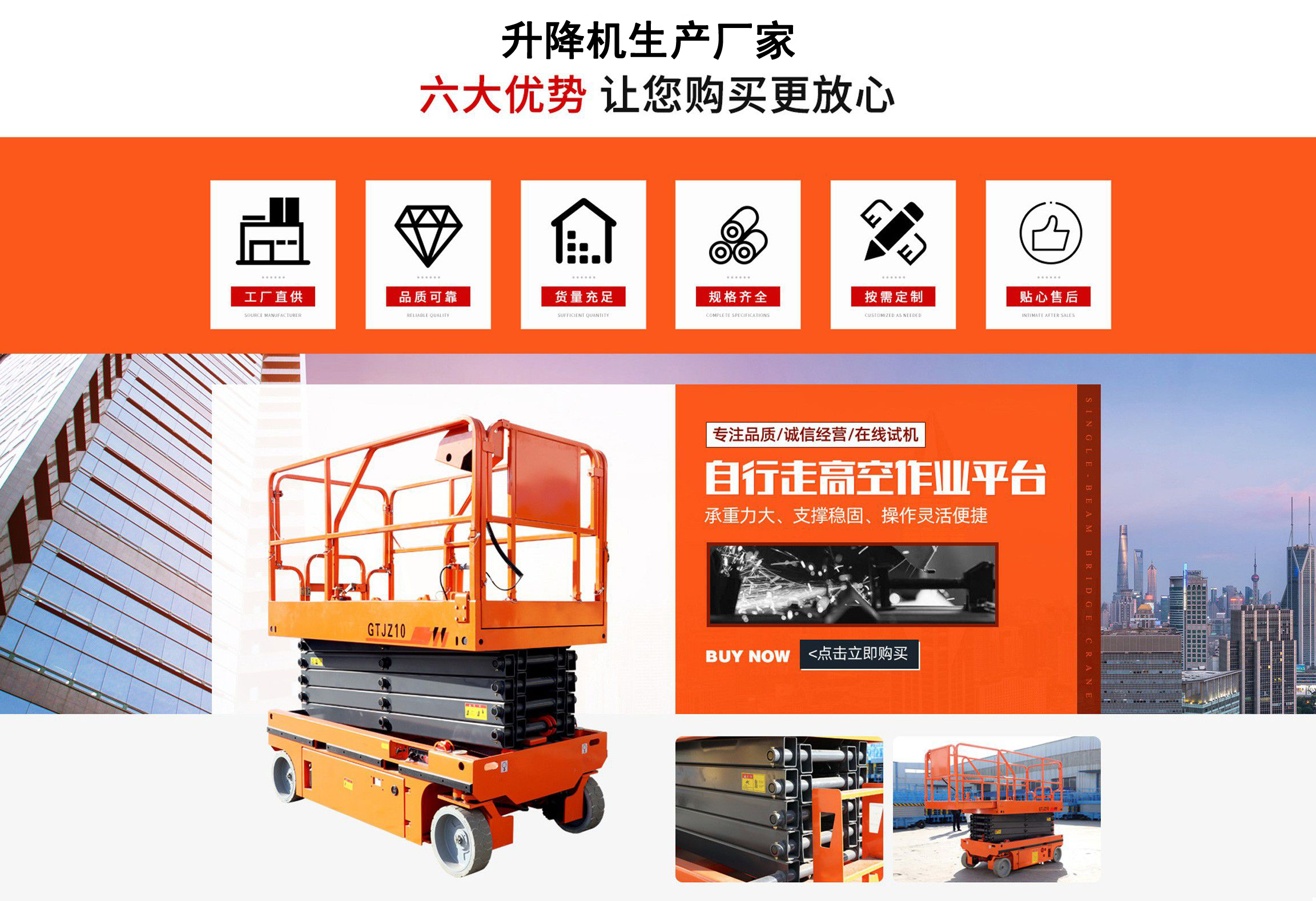 升降機(jī)生產(chǎn)廠(chǎng)家是專(zhuān)業(yè)從事升降平臺(tái),液壓貨梯,卸豬臺(tái),平板拖車(chē),液壓提升機(jī),移動(dòng)式升降機(jī),升降平臺(tái)車(chē),高空作業(yè)設(shè)備,貨梯廠(chǎng)家,液壓登車(chē)橋等升降機(jī)械產(chǎn)品制造十余年,服務(wù)過(guò)各大國(guó)內(nèi)外企業(yè)。 自公司創(chuàng)立以來(lái),經(jīng)過(guò)長(zhǎng)期對(duì)液壓升降臺(tái)的研制和探索,積累了豐富的專(zhuān)業(yè)制造技術(shù)和寶貴經(jīng)驗(yàn)。憑借豐富的專(zhuān)業(yè)技術(shù)及不斷開(kāi)拓創(chuàng)新的精神,現(xiàn)已成為專(zhuān)業(yè)于升降機(jī)械的公司。 長(zhǎng)期以來(lái),憑借公司不斷的壯大及對(duì)液壓技術(shù)的不斷改進(jìn)和探索。能根據(jù)客戶(hù)不同的要求設(shè)計(jì)一套合理、完善的方案供客戶(hù)參考。現(xiàn)有產(chǎn)品:升降平臺(tái),液壓貨梯,卸豬臺(tái),平板拖車(chē),液壓提升機(jī),移動(dòng)式升降機(jī),升降平臺(tái)車(chē),高空作業(yè)設(shè)備,貨梯廠(chǎng)家,液壓登車(chē)橋等。本產(chǎn)品在各類(lèi)工礦企業(yè)、港口物流以及其它領(lǐng)域均發(fā)揮著重要的作用。始終以“以信譽(yù)求生存、以技術(shù)求發(fā)展”為本廠(chǎng)的經(jīng)營(yíng)理念。只要你選購(gòu)我廠(chǎng)的產(chǎn)品,無(wú)論你身在何方都能得到我們迅捷優(yōu)良的服務(wù)。 公司自成立已經(jīng)來(lái)本著"團(tuán)結(jié)、求實(shí)、創(chuàng)新、互贏"的理念,以先進(jìn)的技術(shù)和服務(wù),為客戶(hù)建造滿(mǎn)意的產(chǎn)品。幾年來(lái)受到廣大客戶(hù)的好評(píng)。...